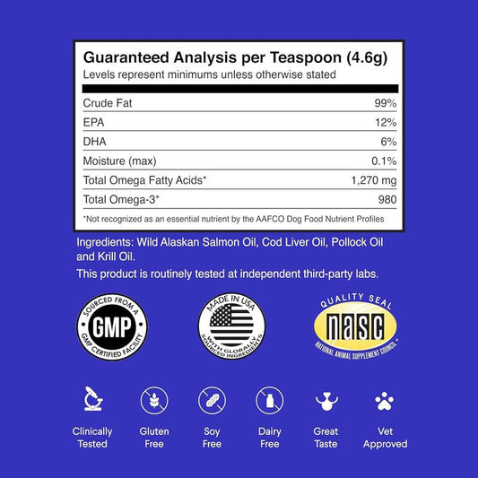Wonder Paws Omega Max 3X Fish Oil for Dogs - Triple Source with Alaskan Salmon, Cod, and Krill Oil for Coat, Joints & Immune System Support